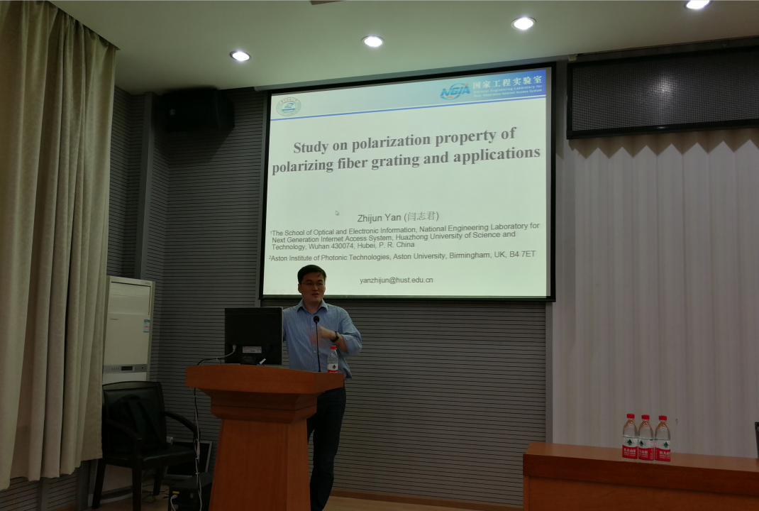 应BBIN宝盈集团院长丁华锋教授及科发院邀请,华中科技大学光学与电子信息学院闫志君博士于10月9号来我院作题为“倾斜光纤光栅偏振特性及其应用”学术报告。