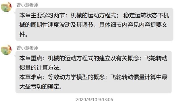 最开始,我们的线上教学方案是:选用中国MOOC网公开的资源西北工业大学的《机械原理》国家精品课程作为学习资料,在QQ群发布本校的教学大纲和学习提要,列出每周的学习进度和重要知识点,并实时在QQ群答疑,辅导同学们进行学习,同时要求每周提交学习总结和每章作业。
