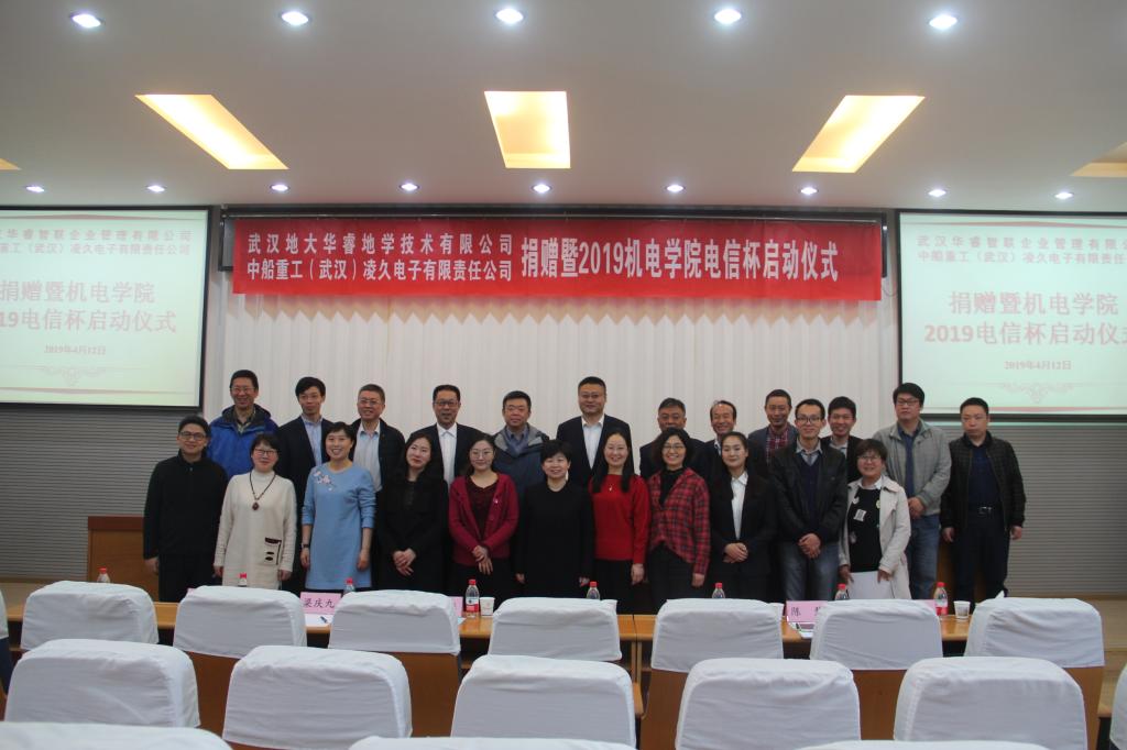 (通讯员张祥莉/陈芮/罗大鹏)2019年4月12日上午10时,武汉华睿智联企业管理有限公司、中船重工(武汉)凌久电子有限责任公司捐赠暨2019BBIN宝盈集团电信杯启动仪式于教二楼301隆重举行。参与本次会议的电信杯历届赞助企业有:武汉华睿智联企业管理有限公司、中船重工(武汉)凌久电子有限责任公司、武汉鸿志高测电气技术有限公司;教育部产学研协同育人项目企业有:武汉易思达科技有限公司,武汉光庭信息技术股份有限公司,中智讯(武汉)科技有限公司,武汉凌特电子技术有限公司及其他合作企业;校内院系及职能部门有:BBIN宝盈集团、教育发展基金会、资产公司、教务处、学生就业创业指导处等。BBIN宝盈集团院党委副书记于晓舟担任主持人。