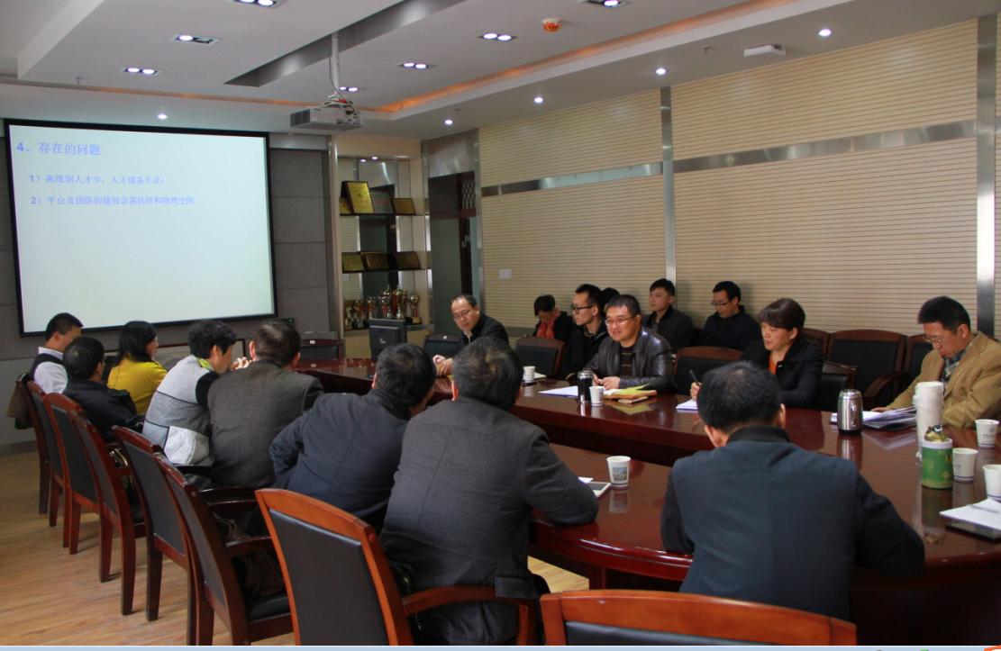 罗杰副院长介绍学院目前的科研现状,提出我院科研目前亟待解决的问题:1、高层次人才少,人才储备不足;2、平台及团队建设处于起步阶段,需要扶持和引导。丁华锋院长就我院2015年产学研基地建设、科研成果转化等方面作补充说明。