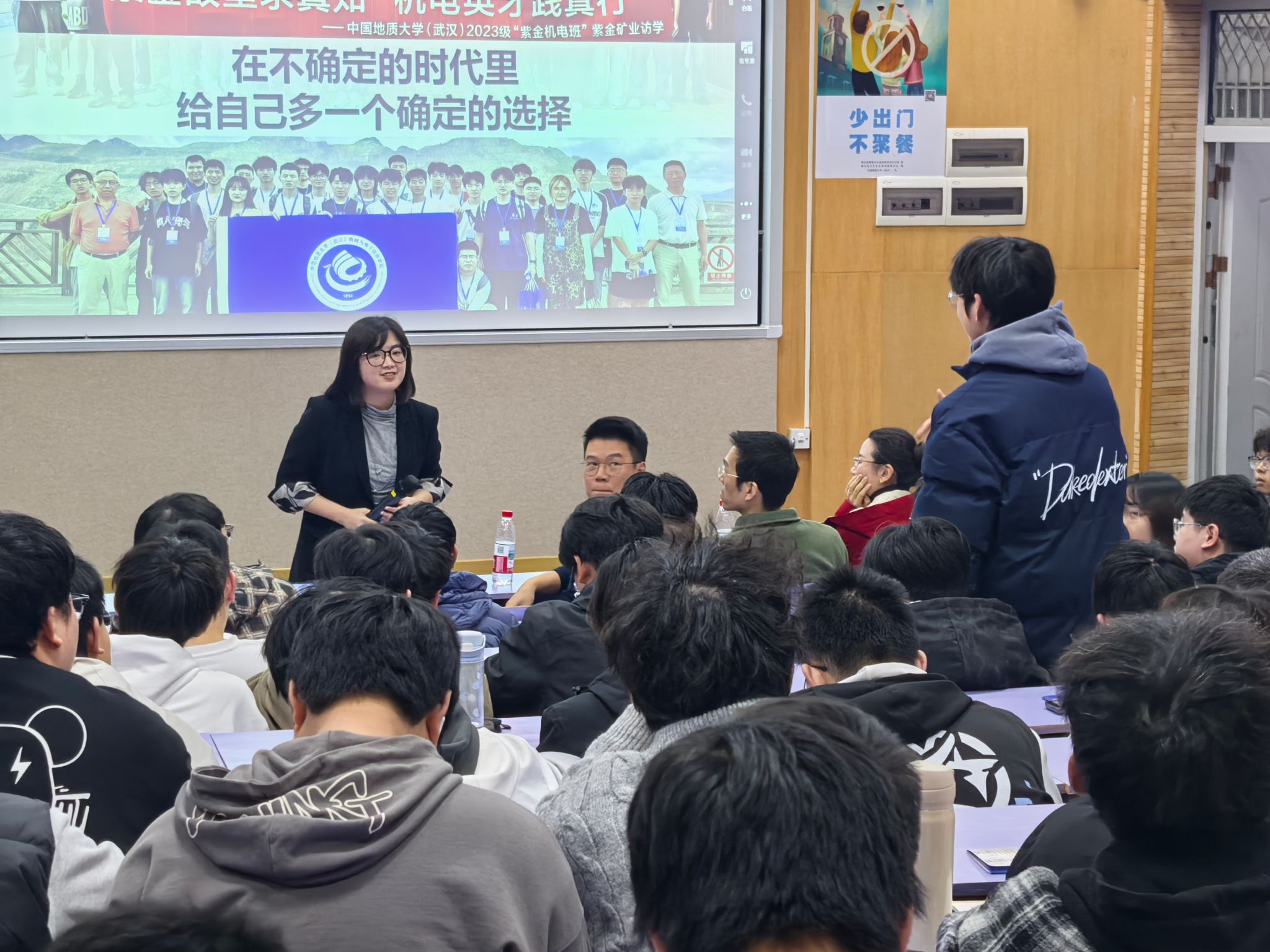 据悉,“紫金机电班”是学院与紫金矿业集团响应国家产教融合政策、探索订单式人才培养模式的创新举措。自第一期成功启动以来,其培养模式和成效获得了师生的广泛认可。值得一提的是,学院2024级本科生代表曾主动联名致信紫金矿业集团,表达了对该培养模式的高度认可和参与意愿,这一积极行动也成为促成第二期“紫金机电班”筹备与启动的重要因素。据统计,第二期“紫金机电班”宣讲会后报名人数较第一期实现翻倍增长,充分体现了学生对校企联合培养模式的信任与期待。本次宣讲会的成功举办,不仅加深了机电学子对紫金矿业集团的了解,也为第二期“紫金机电班”的顺利招生奠定了坚实基础。未来,学院将继续与紫金矿业集团深化合作,持续优化培养方案,为社会输送更多高素质的应用型人才,共同谱写产教融合、协同育人的新篇章。