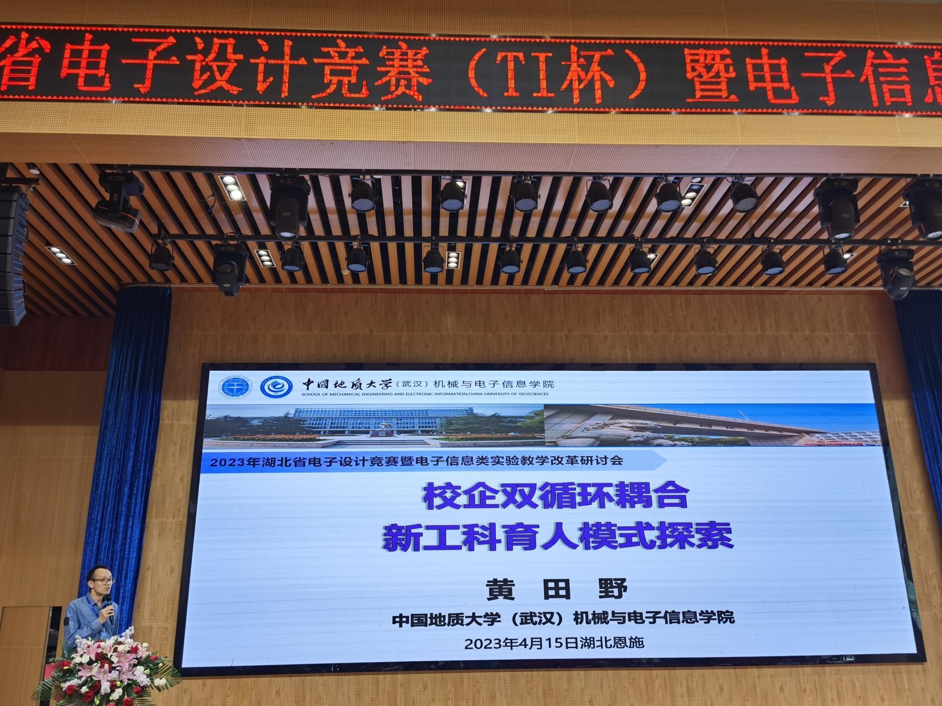 在特邀报告环节,电子信息工程专业负责人,黄田野教授以《校企双循环耦合新工科育人模式探索》为题分享了我校电子信息工程专业的创新育人模式探索经验。