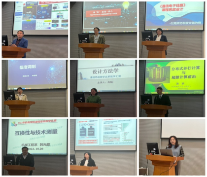比赛中,九位参赛教师各展所长、各有思辨,他们结合所授的课程或所在的团队,根据自身的教学经验,从不同的角度将思政内容切入知识点。有的老师提出“三五三”教学模式,强调重塑课程,令人眼前一亮;有的老师指出要知行合一,落实理论与实践相结合,将教育教学落到实处;有的老师主张避免将思政变成突兀的植入广告,提出拓宽思政内容的广度,致力于让思政内容更生动,更容易被接受;有的老师将课程典型案例与时事政策、国家安全结合,因时而动,寻找学生的共情点,激发学生的责任感与使命感;有的老师提出把文化融于课堂,打造多维度课堂和有温度课堂,真正实现思政与课程相融合。整个比赛教师们各展风采、各有特色。