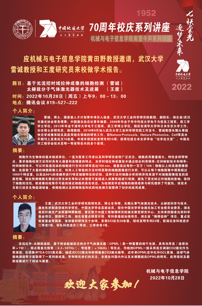 机电讲坛(2022-18):武汉大学雷诚教授和王度研究员作学术报告