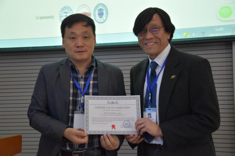 会议于11月10日上午在教二楼301会议室开幕。会议伊始,本次大会主席,BBIN宝盈集团院长丁华锋教授致开幕辞,代表所有大会委员会成员对学者们的出席表示热烈欢迎,他表示相信各位专家的精彩报告与讨论将推动机电与机械工程领域的前沿研究,加强领域了解、促进合作。来自美国加州大学伯克利分校的Dennis K. Lieu教授就混合动力汽车动能回收系统的控制作了主题演讲。会议共进行了4个主题演讲,随后,来自合肥工业大学的訾斌教授对演讲者进行了颁奖。