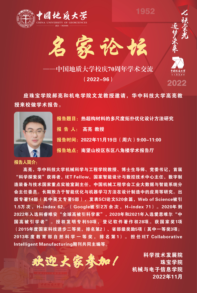 【11月19日】校庆系列学术活动---名家论坛(2022-96):华中科技大学高亮教授