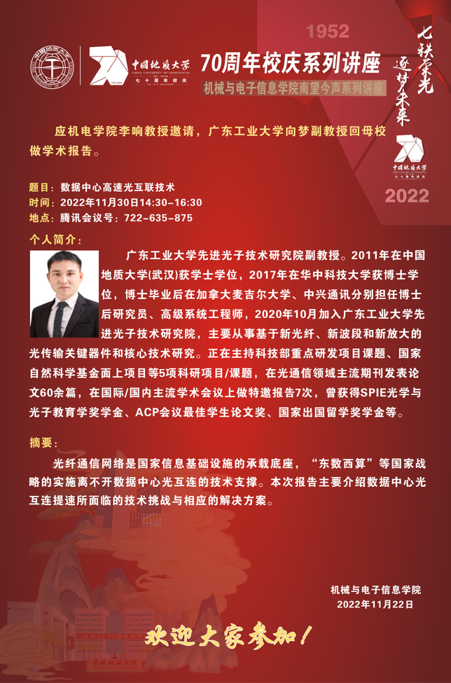 【11月30日】校庆系列学术活动---机电讲坛(2022-33):广东工业大学向梦副教授