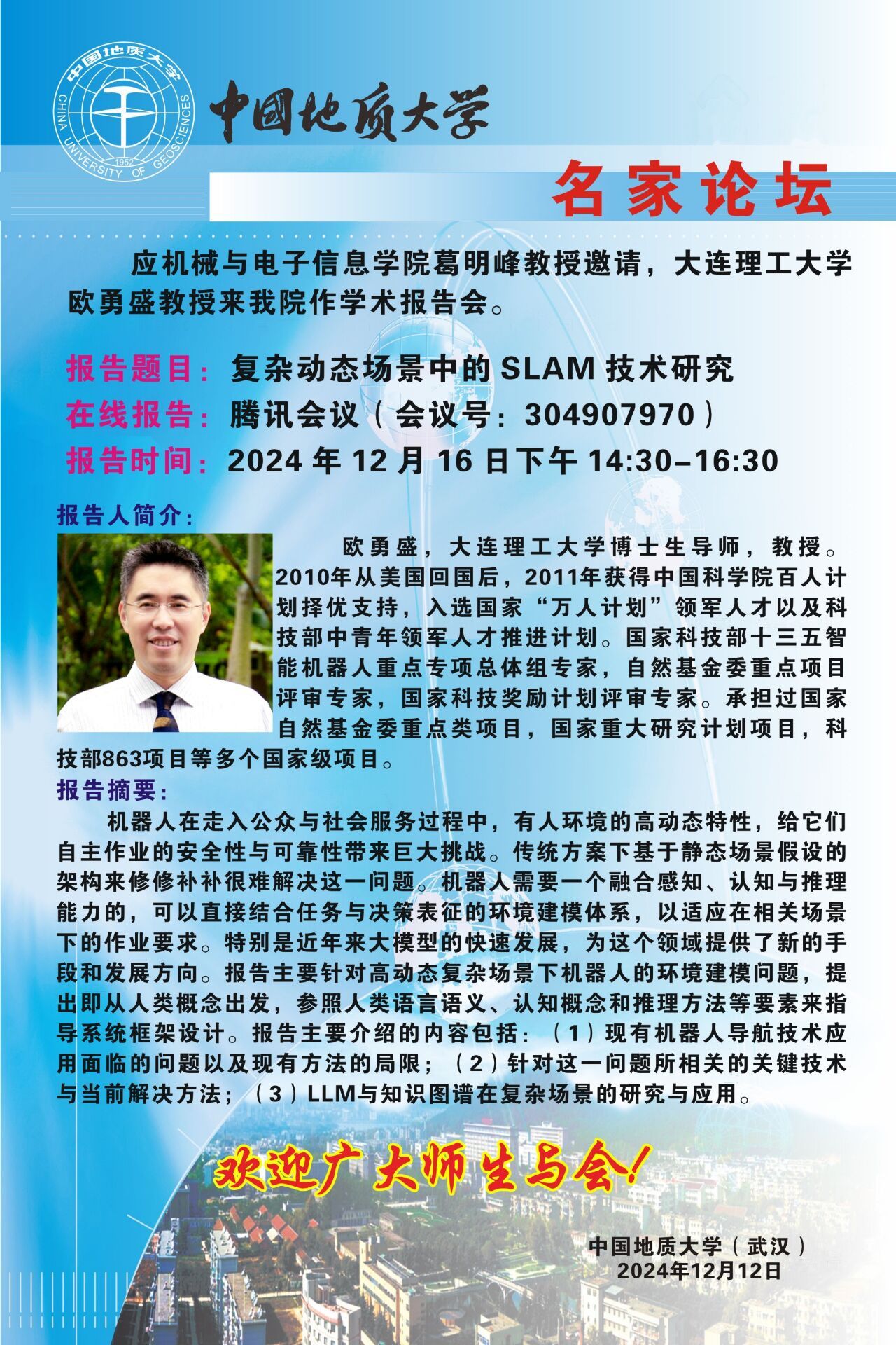 【12月16日】名家论坛:大连理工大学欧勇盛教授