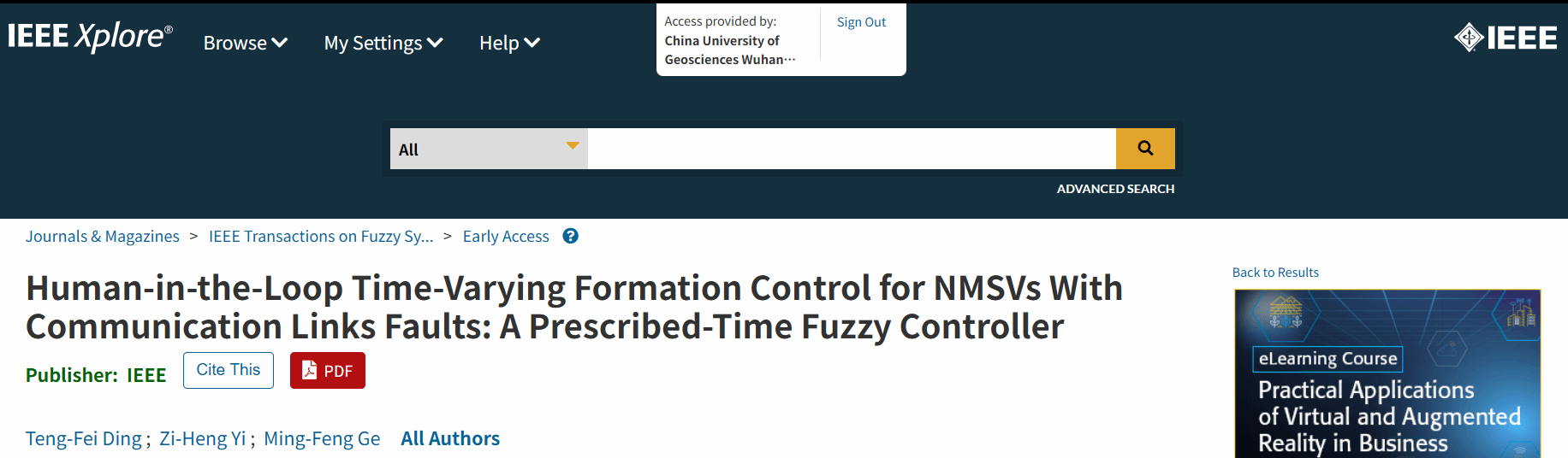 近日,BBIN宝盈集团葛明峰教授团队(丁腾飞、易子恒、葛明峰)在模糊系统领域权威期刊《IEEE Transactions on Fuzzy System》(IF=11.9)发表研究成果。该文提出了一种新型的基于分层控制框架的预定时间模糊控制算法,解决了具有通信链路故障和模型不确定性的多无人船系统的时变编队控制问题。
