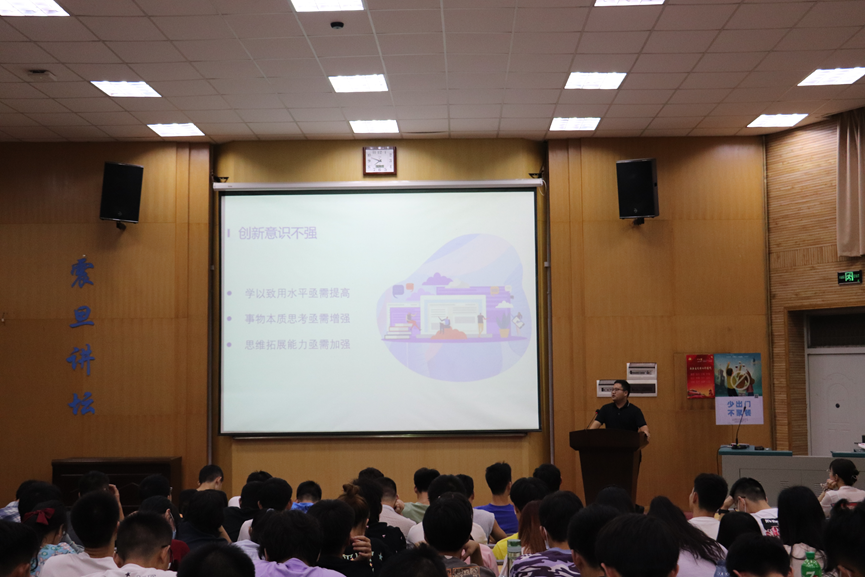刘彪详细阐述分析了2020级机电学子在创新能力层面存在的5方面短板劣势,并提出具体提升措施。一是创新意识不强。要提高学以致用水平,不断加深对事物本质的思考,主动增强思维拓展能力;二是创新魄力不足。要消除畏难情绪,不断增强创新自觉,提升创新自信;三是创新想法不够。要结合生活实际深入观察,养成活学活用习惯,注重知识交叉融合能力培养;四是创新招法不多。要广泛掌握专业技能,有效查阅大量文献资料,在总结中凝练方法;五是创新成效不佳。要做出“真创新”成果,增强“纸变钱”能力,摒弃“加综测”等短视思维。他同时指出,同学们要仔细分析自身存在的问题,把短板劣势变“不”为“有”,以有效的创新引领发展潮流。
