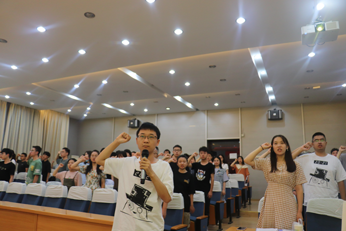 毕业生党员陈曦带领全体党员重温入党誓词。