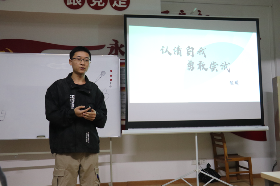 随后签约华为的陈曦进行题为《本科生就业的面试技巧及找工作中的注意事项经验分享》的报告。报告开始,陈曦点明了自己报告的主题“认清自我,勇敢尝试”。总结了几个关键方面与同学们分享:清晰职业目标与定位;认真准备,仔细复盘;大胆投递,名企并未遥不可及三个方面来具体解释主题。第一部分中他指出我们应该认清自我清晰目标,了解自己是什么样的人,喜欢什么样的工作,想成为什么样的人,想要什么东西,并结合自身经历分享了一些求职故事。第二部分中他强调我们应该充分了解信息,准备多份简历;注意时间节点,把握好秋招春招;认真做好复盘,总结每一次失败和成功。陈曦介绍了自己复盘的方法,为每一次求职建立文件夹,包含为这家公司准备的资料和心得体会等。同时他以自身为例,详细介绍了求职的时间线。第三部分中他指出了我们应打破思维误区,勇敢的去向大型企业投递简历。最后他将“未来无限,精彩由自己创造”这句话送给了在场的同学们。
