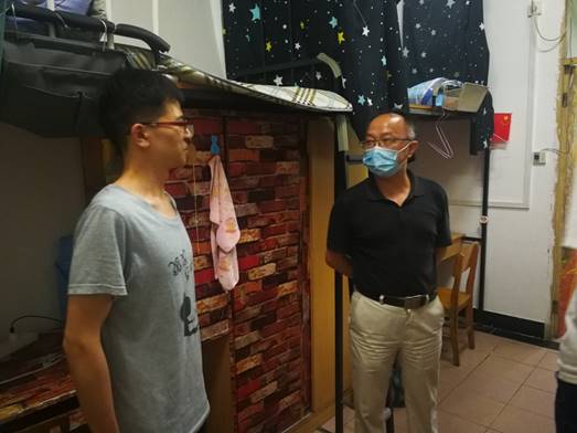 为深入了解学生返校后的思想、科研和生活动态,提醒学生科学、规范做好疫情防控,6月18日下午,学院党委书记瞿祥华,院长丁华锋,党委副书记于晓舟,副院长李波、副院长黄田野和辅导员分组走访学生宿舍和实验室,向复研学生致以亲切问候和深切关怀。