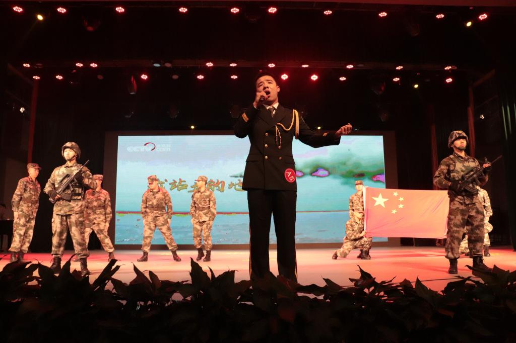 地大国防生刘阳演唱的《我站立的地方是中国》,唱出了地大国防生的昂扬气势和“哪怕风似刀来山如铁,祖国山河一寸不能丢”的军人骄傲。现场同学们纷纷表示:“爱国,才是最美的情歌。”