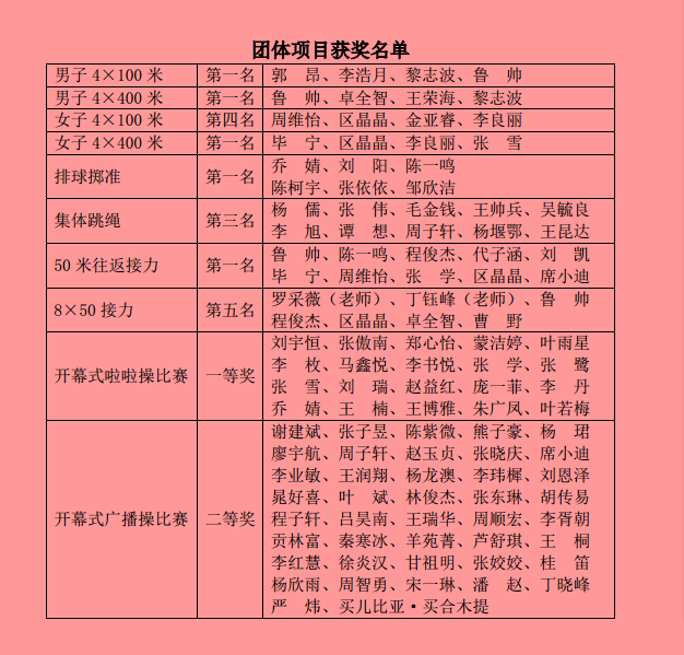 在本次校运会中,我院还获得获学生男子团体总分第一名,学生女子团体总分第三名。体现了我院学生勠力同心,奋勇向前的精神和良好的体素质。