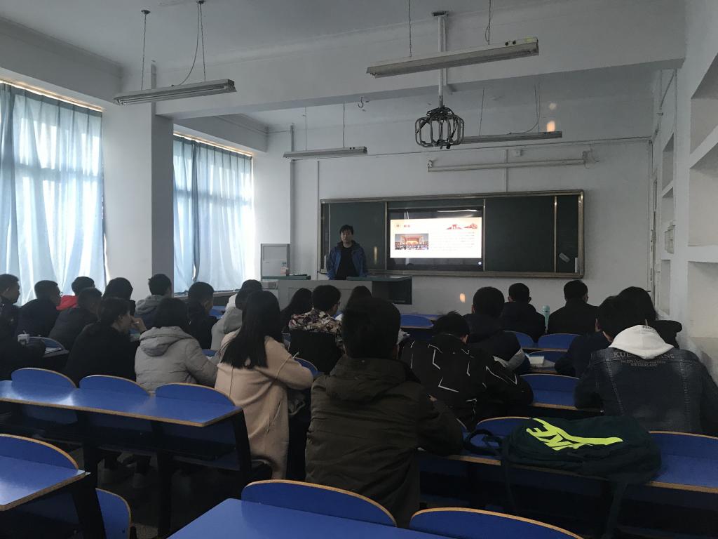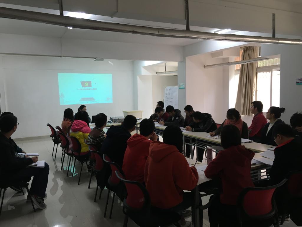 2016级辅导员许小康、罗采薇带领大二各班班长、团支书认真学习党的十九大精神