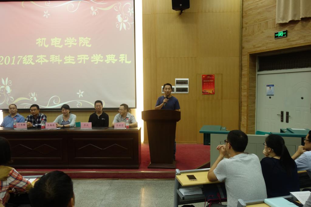院长丁华锋讲话。他从BBIN宝盈集团历史沿革、现阶段师资力量、教学成果、科研方向、科研成果、人才培养计划等方面向新生介绍了BBIN宝盈集团。并希望大家能够珍惜时间、刻苦学习,做到品德高尚、基础厚实、专业精深、知行合一。