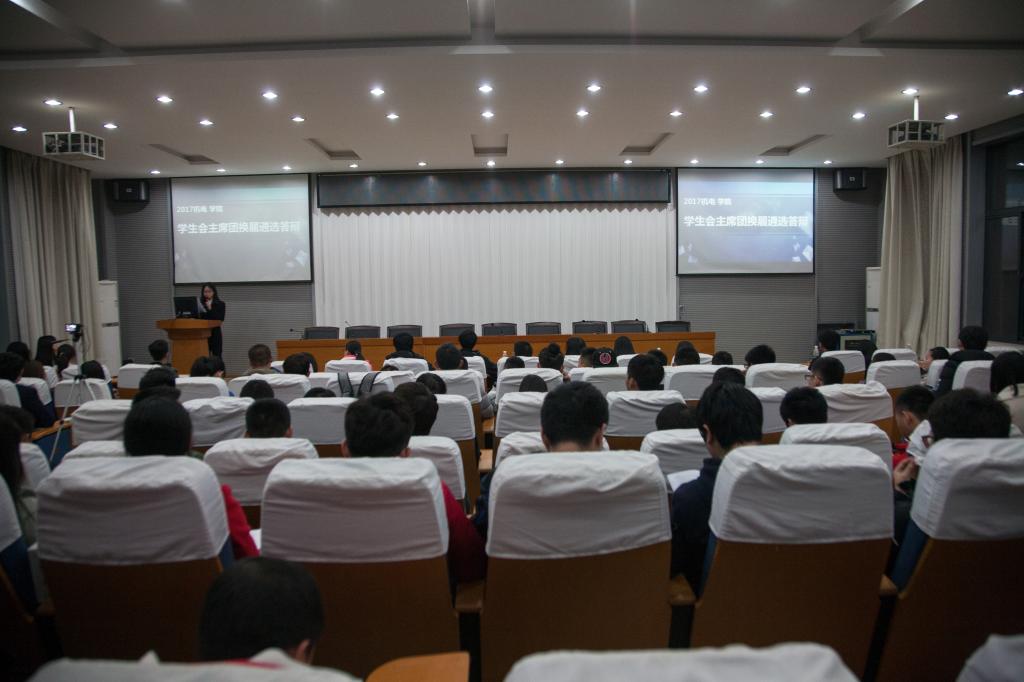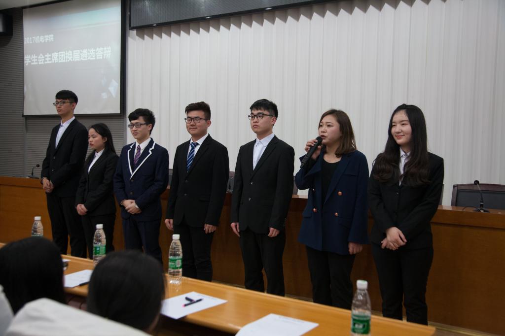 此次答辩形式为"4+4"模式,即候选人有4分钟展示自己的PPT,4分钟回答评委及学生代表的提问,答辩完成后,由评委及学生代表现场投票。答辩现场,候选人依据PPT对自己的观点进行阐述,向大家展示了自己对于将来学生会工作的规划,他们分别就院团委和学生会的合作,学院各协会与学生会的联系,新媒体发展的改进,基建部与办公室的凝聚力增强,体育赛事的合理安排等方面提出了自己的看法。评委们和学生代表亦根据各候选人的观点进行了针对性的提问。7位候选人展示完毕后,进入自我总结环节,观众们可自由提问,候选人依次回答。