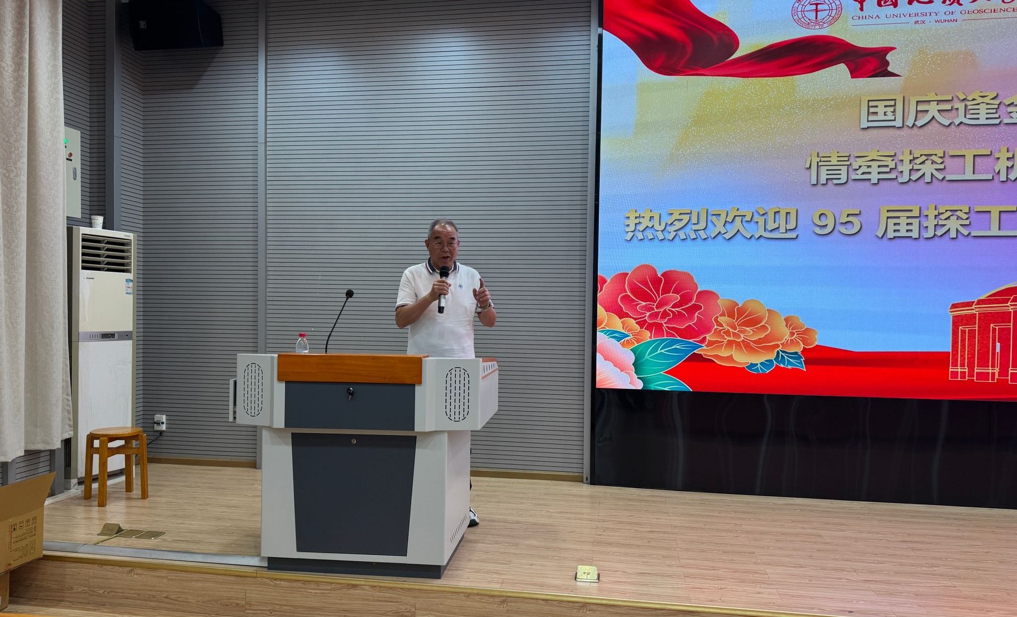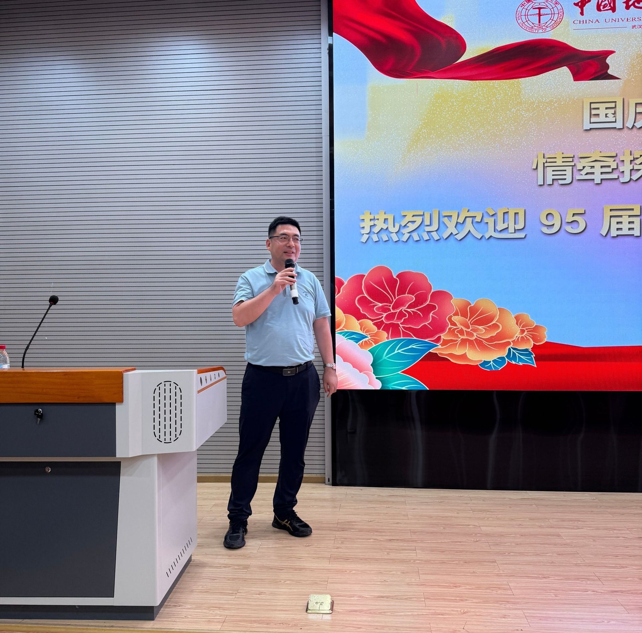校友代表的发言则满含对母校的感恩与对青春的怀念。95 届探工系校友张绍红热情欢迎各位校友 “回家”,动情回忆起求学时与同窗一起上课、在东湖边畅谈理想、手持地质锤奔赴野外探索山河的青春片段;同时以“艰苦朴素,求真务实”的校训勉励在场学弟学妹,鼓励他们在人生道路上勇敢面对挑战、坚守初心。05 届机电系 72011 班校友于彦江则分享了毕业后的职业发展经历,着重强调“BBIN宝盈集团与工程学院本是一家”的深厚渊源,呼吁大家践行 “今天我以地大为荣,明天地大以我为荣”的信念,为母校与学院发展贡献力量,并送上美好祝福。发言期间,张绍红还特意为老教师们送上家乡特产,以朴素真挚的方式表达对恩师的感恩之情,现场氛围温馨动人。