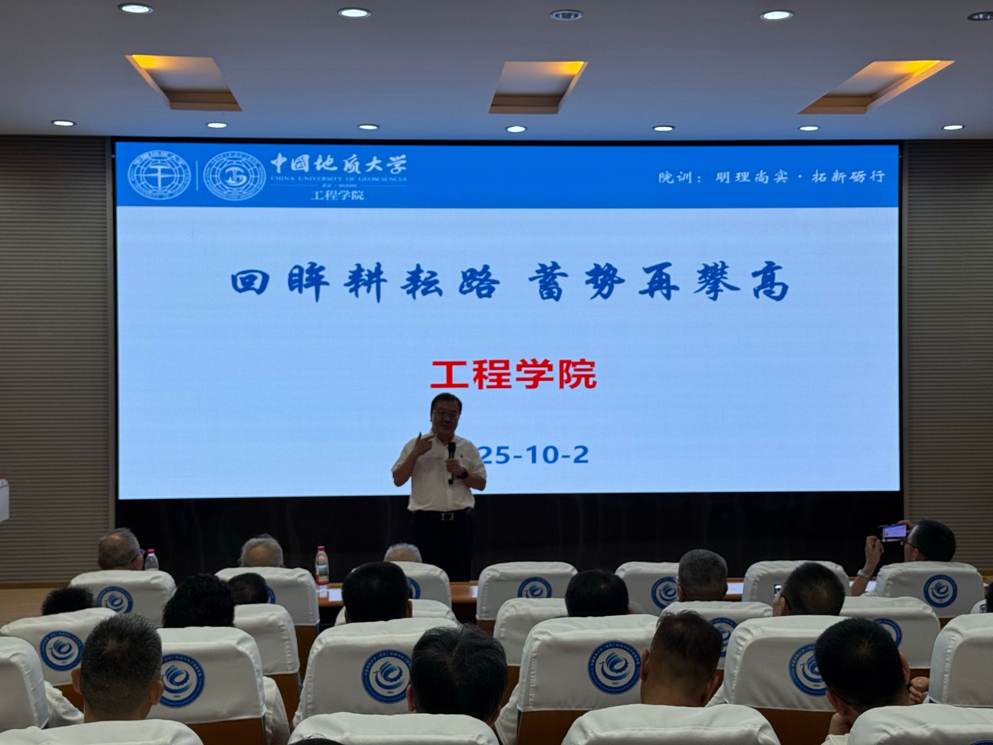 会上,工程学院院长王亮清率先详细介绍学院发展成果。他指出,探工系以机械专业为根基,在梳理历任四位院长的建设历程后,明确学院“立足地学特色、深耕工程领域”的目标定位。同时,他通过展示多类科研平台实景,全面讲解学院从本科到博士后的完整学科体系与师资队伍建设成效;结合条形图数据,直观呈现 “本科生占比高、人才培养基数大”的现状,并重点阐述学院创新构建的 “具备系统演化观、人地协调观、工程伦理观” 新工科人才培养模式。此外,王亮清院长还从党建双创、人才培养、科学研究等维度,总结 2024 年工作亮点,特别提及BBIN宝盈集团宁伏龙院长标志性成果“梦想号”获习近平总书记表彰的重要荣誉,充分彰显学院在科研与育人领域的卓越实力。