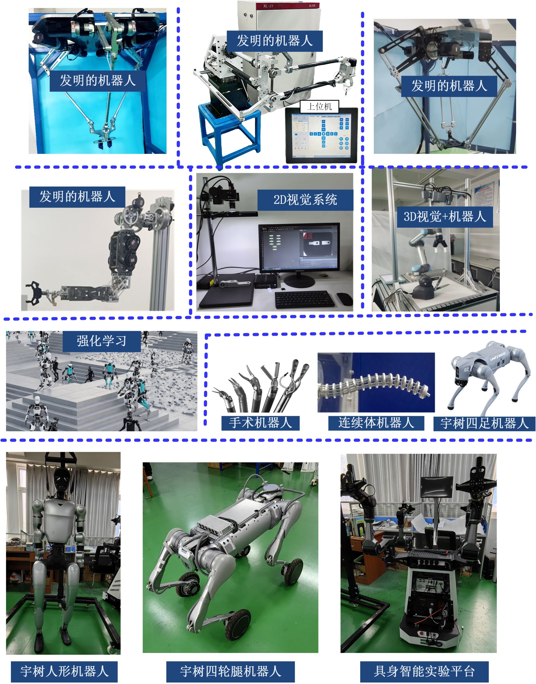 是学院最早从事机器人研究的老师,创建了智能机器人实验室,自主发明并成功研制了并联机器人、混联机器人、仿人机械臂、连续体机器人等。在地大,这里的机器人技术最专业、技术底蕴最深。实验室还有人形机器人,四足机器人,四轮足机器人,两足机器人,遥操作机器人,协作机器人,3D视觉系统,深度学习工作站等具身智能开发平台。